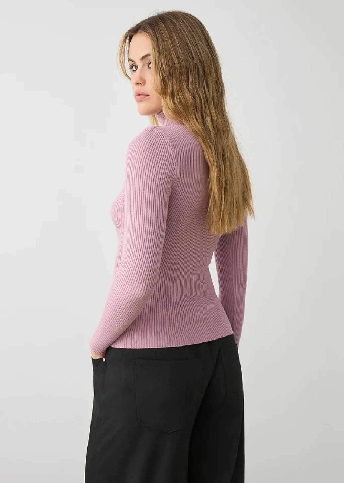 Jersey canalé de viscosa , con manga larga y cuello cisne.