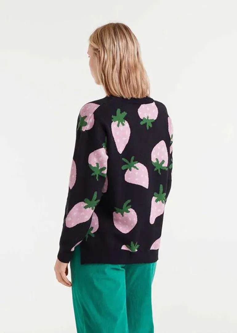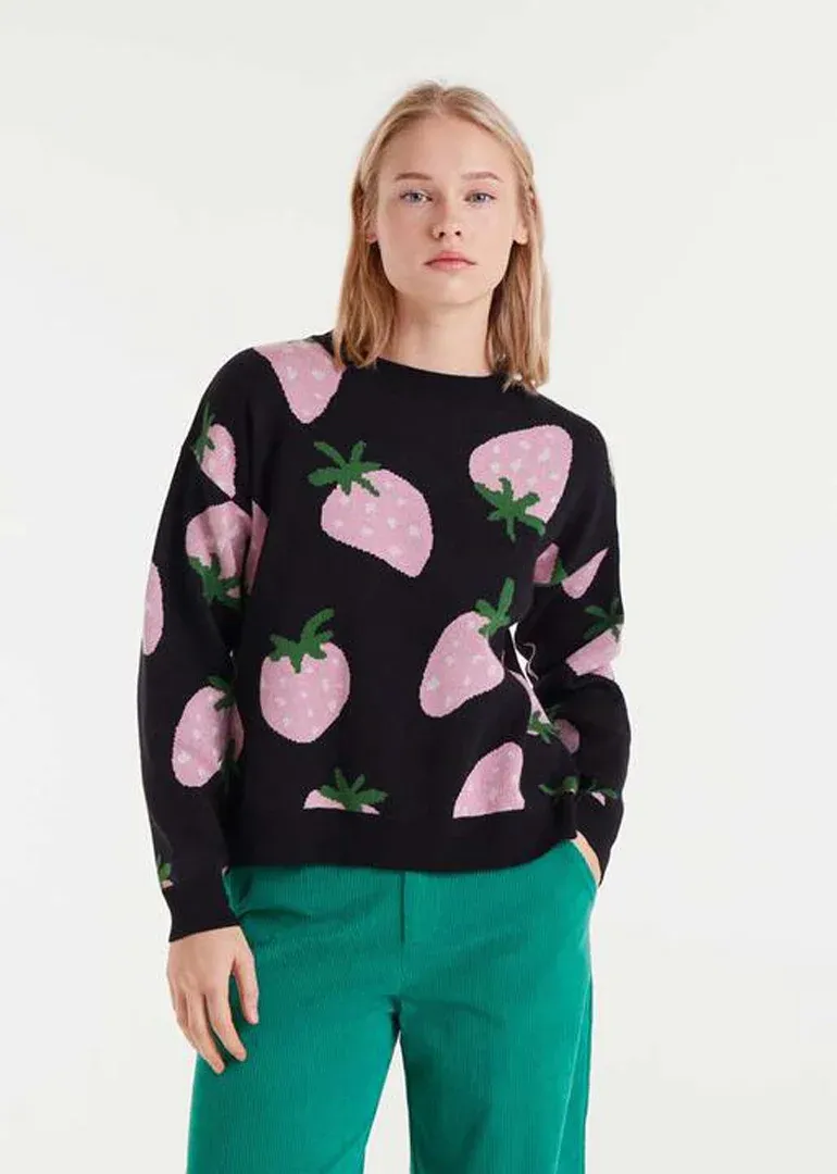 Cuello redondo y manga larga, con hombro ligeramente caído. Detalles con acabados en rib. La modelo mide 174 cm y lleva la talla S.