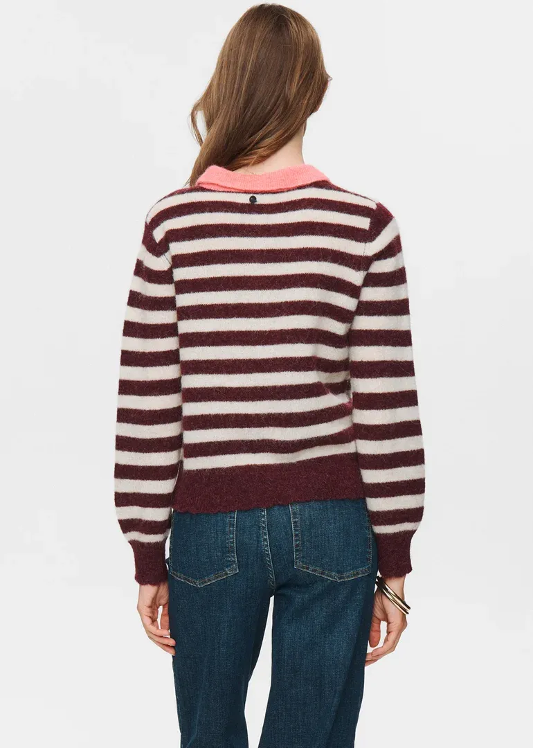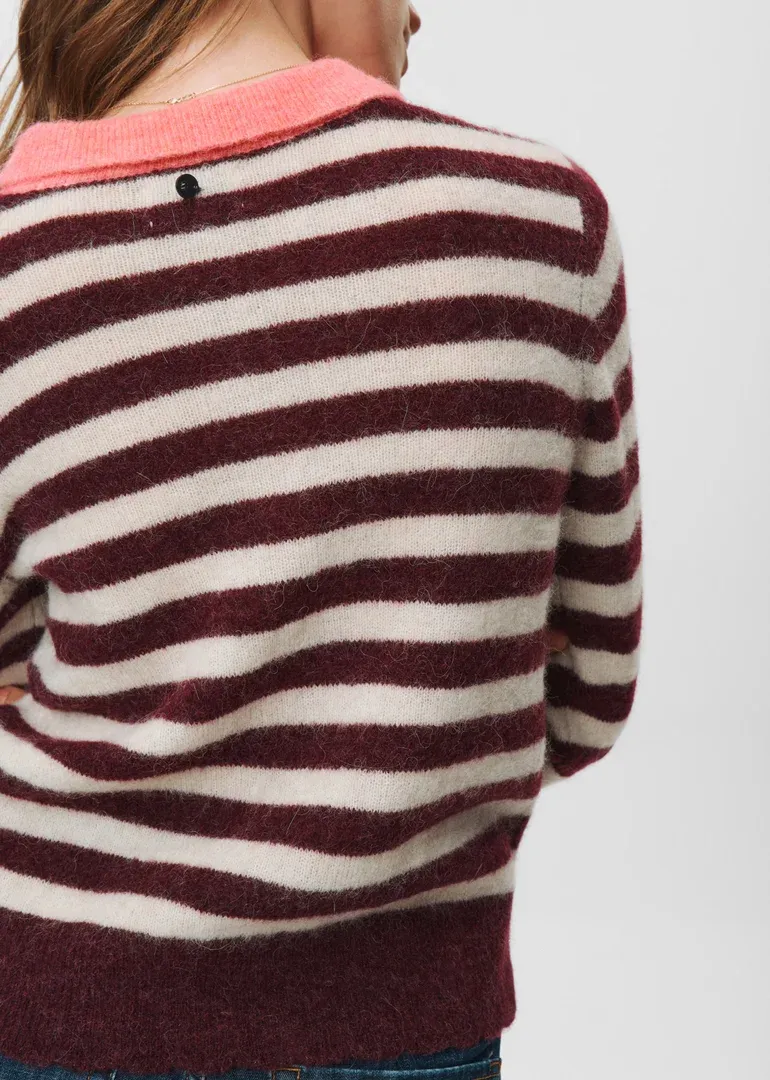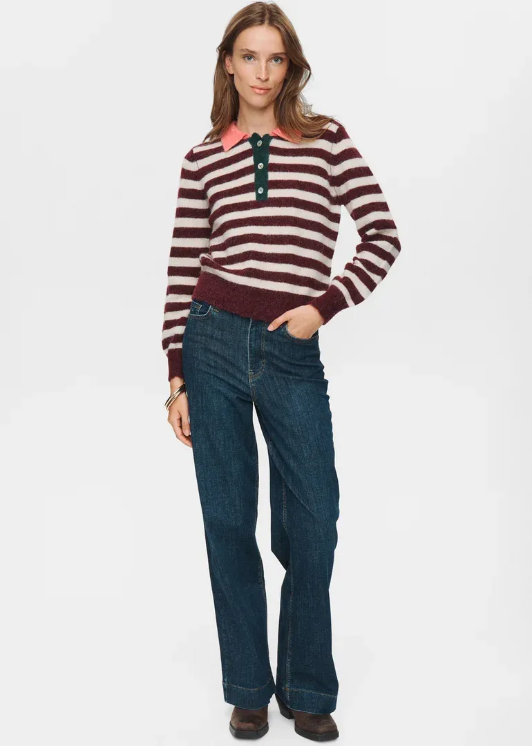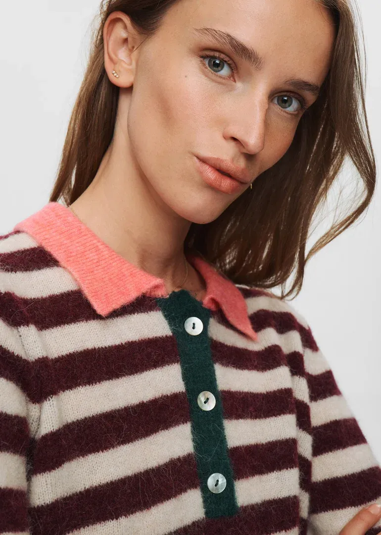 Jersey cuello polo de rayas, en tricot con mezcla de lana y alpaca.