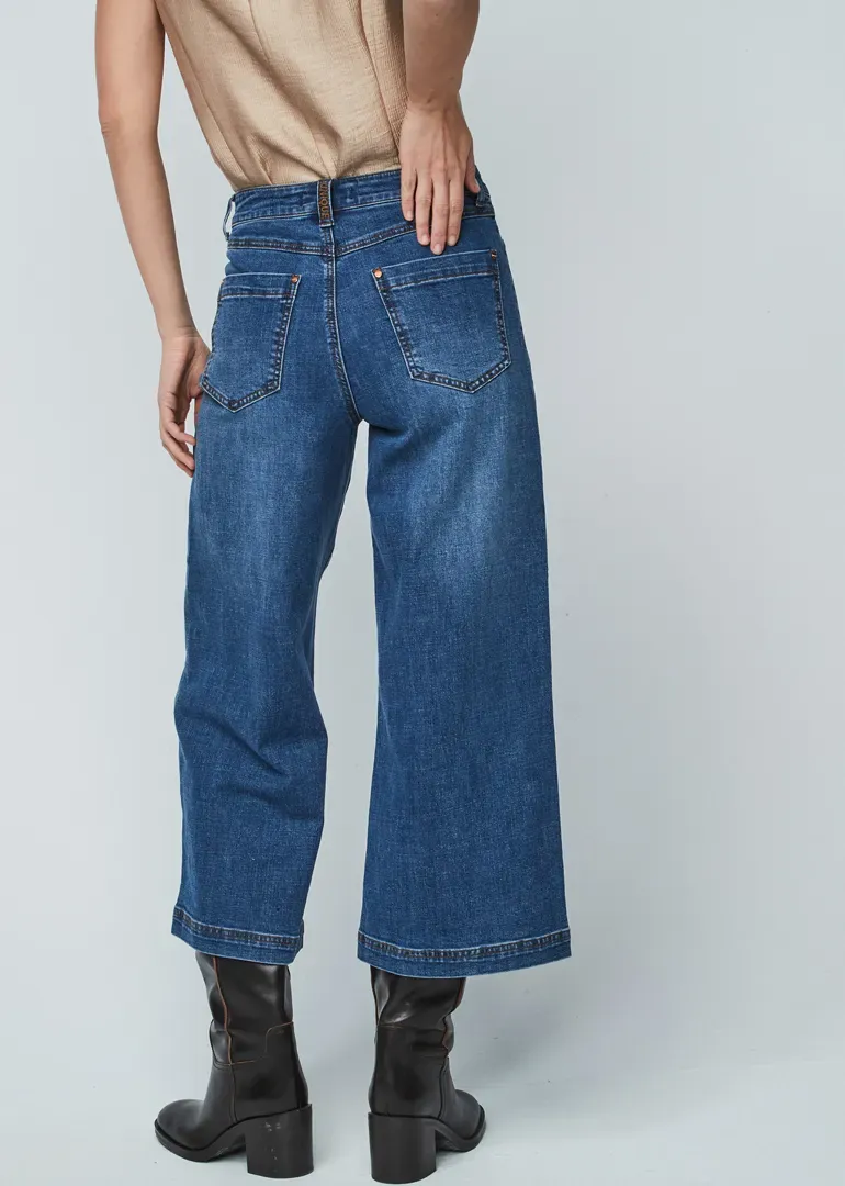 Pantalón ancho tobillero, de cinturilla alta.