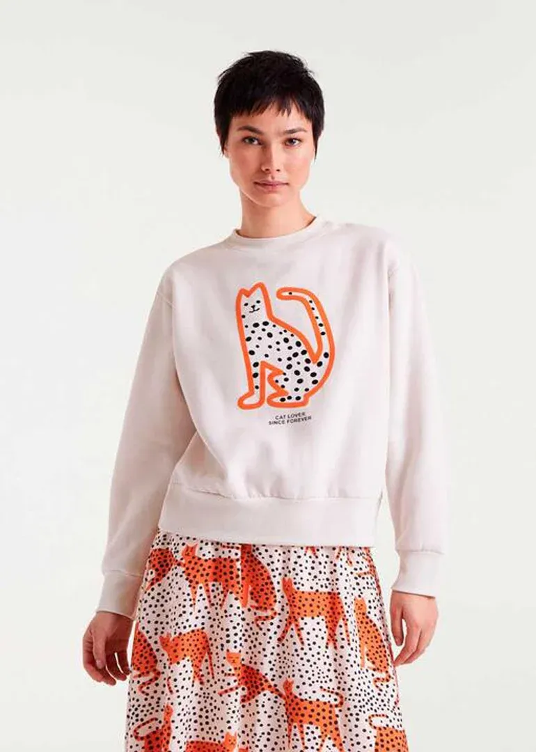 Sudadera blanca con estampado Cat Lover/ Since forever.